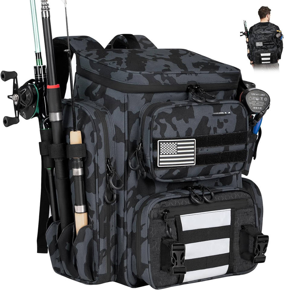 Boîte de rangement pour matériel de pêche à double couche vert armée, 2 porte-cannes, 2 porte-gobelets, 1 sangle de transport, grand modèle d'accessoire