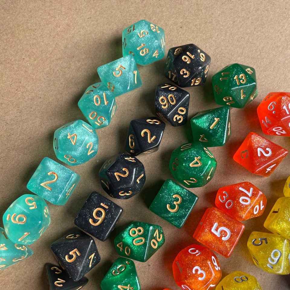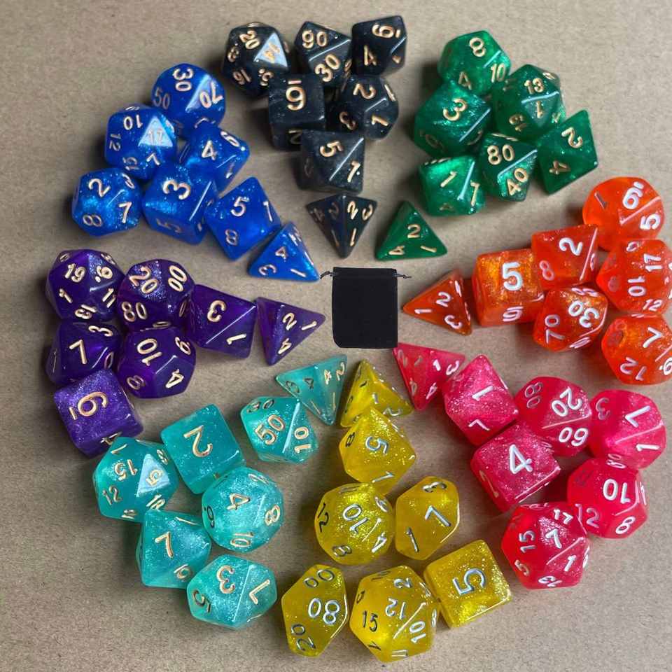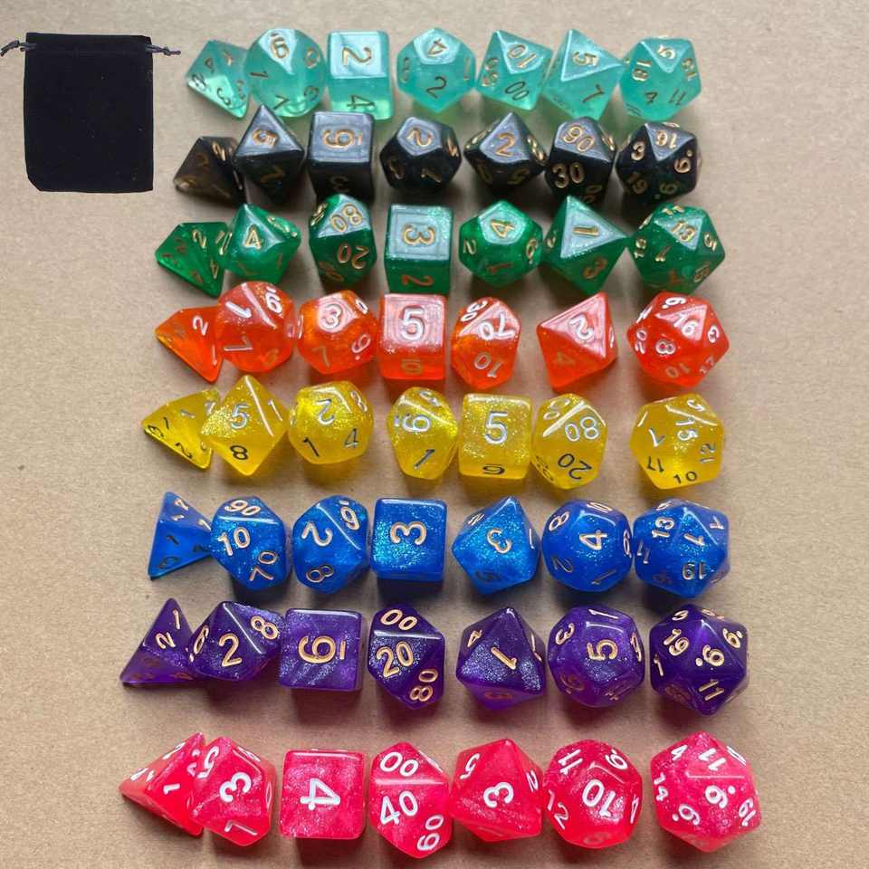 Échantillon gratuit fourniture en gros jeu de dés 7 pièces dés en résine polyédrique à paillettes pour jeux de rôle dés avec pochette