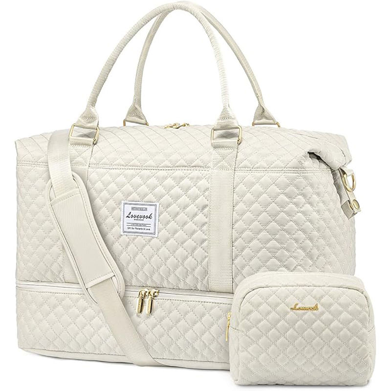 Free Sample Women's Fashion Canvas Weekender Duffel Tote Large Capacity Travel Bag Zipper Lightweight Overnight Overnight