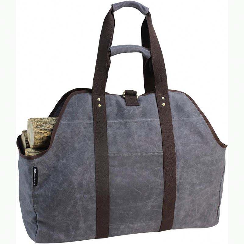 Sac de transport pour bûches en toile cirée de 16 oz, robuste, pour l'extérieur, avec poignées en bois, échantillon gratuit