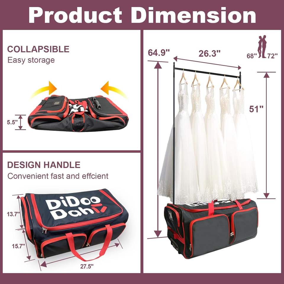 Échantillon gratuit : Sac de transport pour robe de mariée avec porte-vêtements intégré, sac de danse pour femme, sac de voyage à roulettes pour vêtements