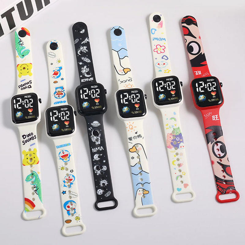 Montre électronique pour enfants à LED tendance avec motif de dessin animé, étanche, carrée, pour étudiants, échantillons gratuits