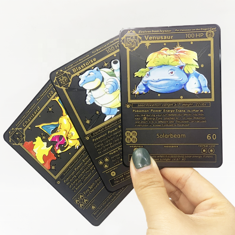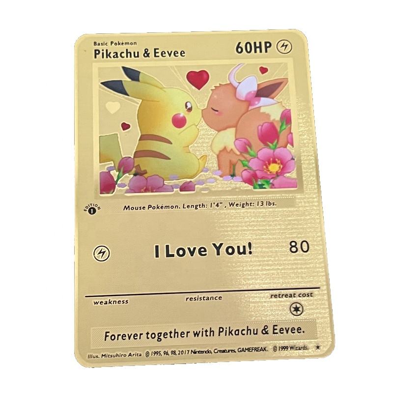 Cartes Pikachu Charizard In Love I Choose You Échantillons gratuits + Design personnalisé en acier inoxydable métal or noir