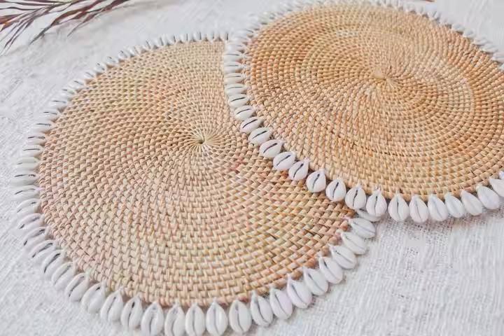 Échantillons gratuits Dessous de verre en rotin naturel fait à la main avec coquillages Vaisselle élégante et décoration intérieure du Vietnam