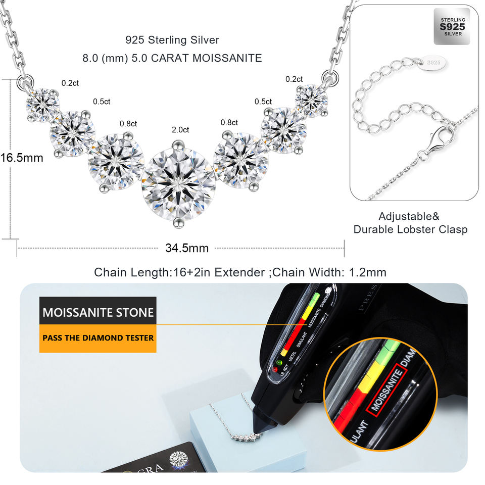 Collier Pendentif Cœur Amour pour Femme en Argent Sterling 925 Plaqué Or 14K avec Breloque Sourire en Diamant de Laboratoire Moissanite VVS 5CT - Livraison Gratuite