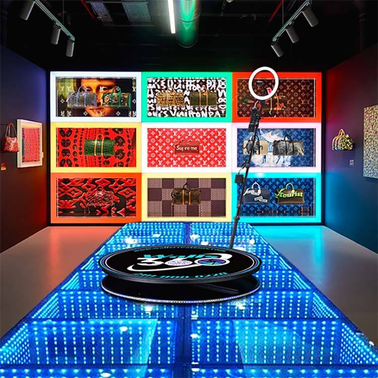 Livraison gratuite 48H 360 Photo Booth Smartphones SLR RGB 360 degrés LED éclairage arrière-plans Construction en métal impression instantanée