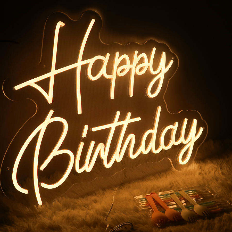 Livraison gratuite, néon lumineux 12V alimenté par USB, inscription « Joyeux anniversaire », décoration de fête à domicile, éclairage de fête, néon lumineux