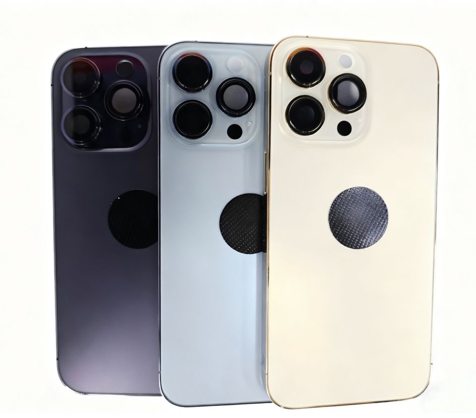 Livraison gratuite Noir pour coque arrière de téléphone portable Cadre en verre Assemblage de remplacement avec design de barre Modèle 14pro