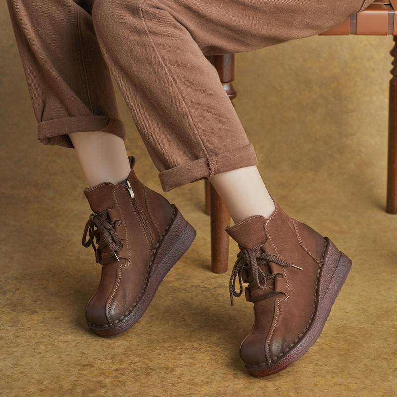 Livraison Gratuite – Bottes compensées à plateforme en cuir véritable faites à la main, style rétro, avec lacets – Cadeau Express Gratuit pour Lui