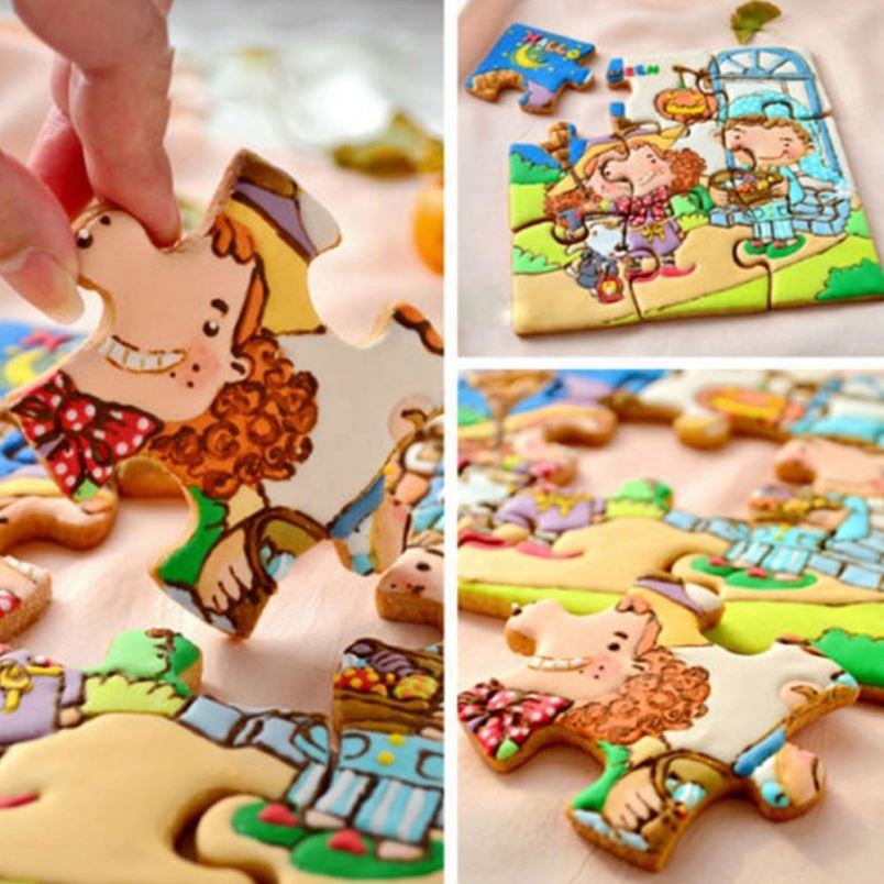 Moule artisanal en forme de Puzzle pour décoration de gâteau Fondant, outils de cuisson pour biscuits et Muffins, livraison gratuite