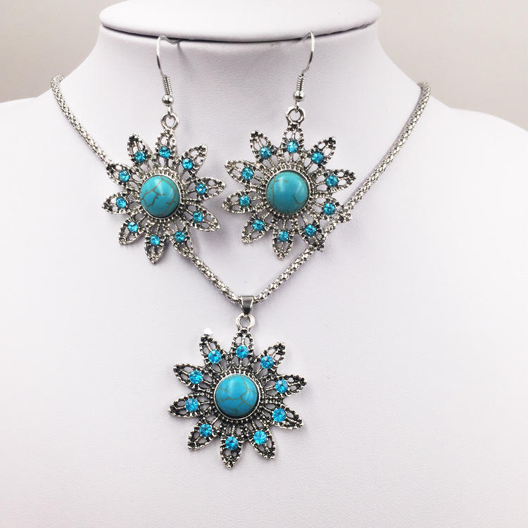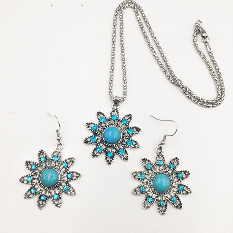 Ensemble de bijoux bohème turquoise en alliage, collier et boucles d'oreilles, deux pièces, pour femmes, livraison gratuite