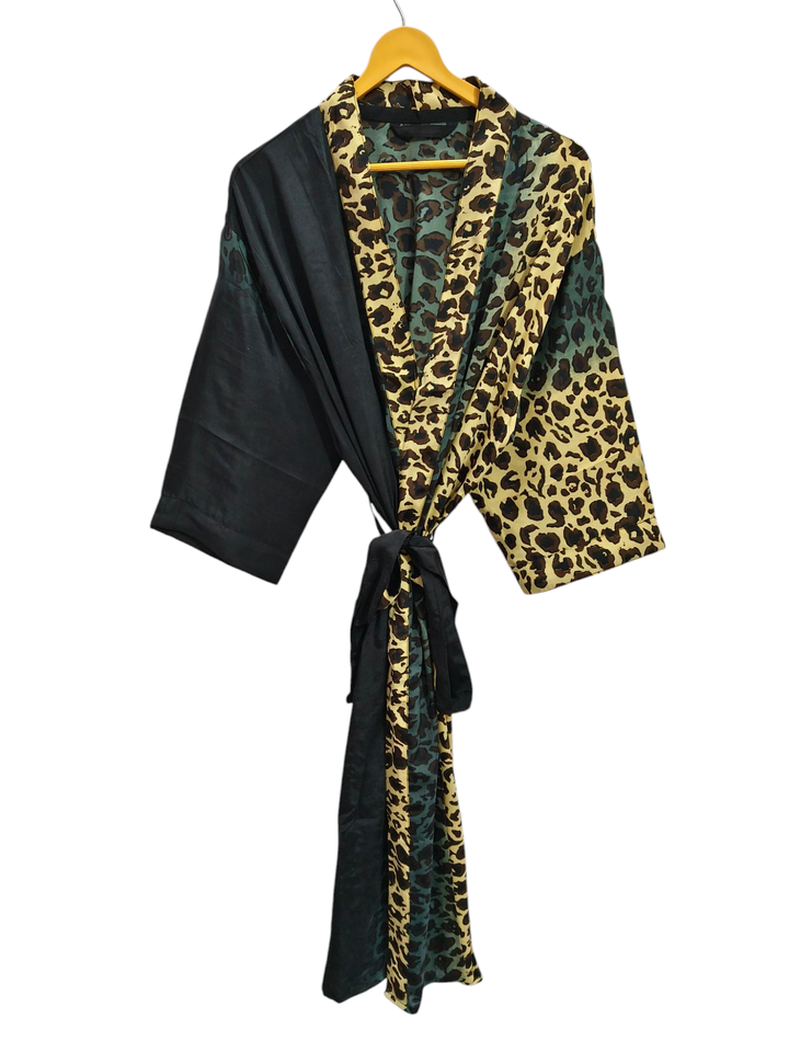 Free Size Tiger Print Robe Bridal Gown Maternity Gown Gift Robe Beach Party Wear Indian Printed Silk Sari Kimono,