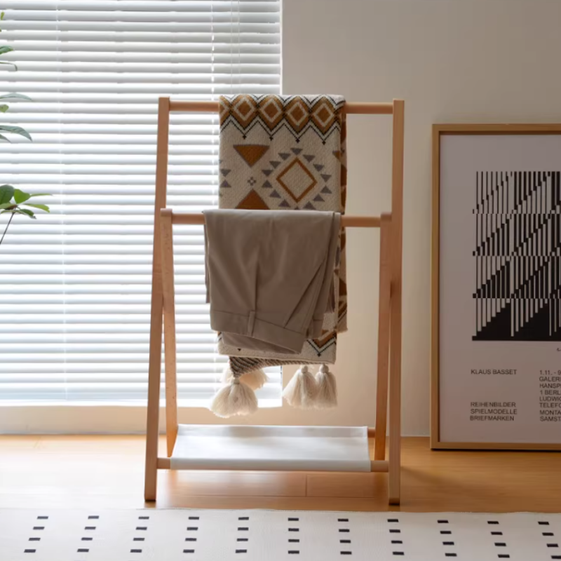 Porte-vêtements pliable autoportant en bois, support pour pantalon, économiseur d'espace, porte-serviettes, séchoir, organisateur de placard