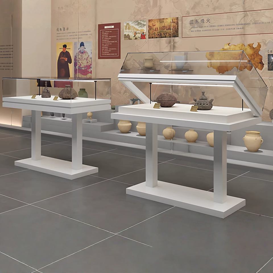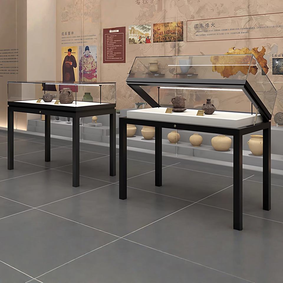 Vitrine en verre autoportante avec éclairage LED Utilisation en musée et en salle d'exposition Dimensions personnalisables respectueuses de l'environnement