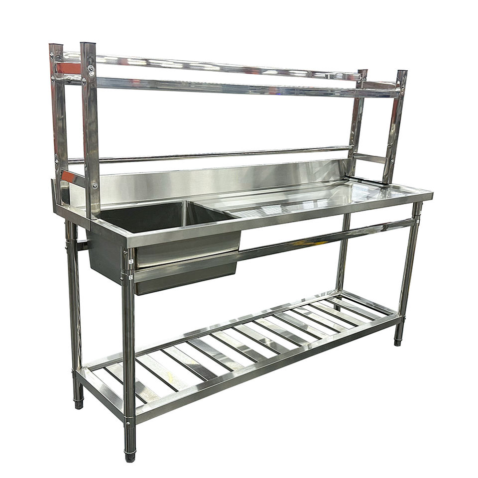 Évier utilitaire autonome en acier inoxydable Évier commercial à une cuvette avec égouttoir et étagères