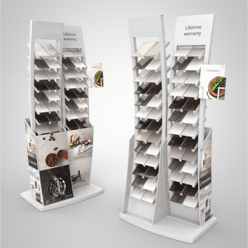 Support debout libre de présentoir en céramique de pierre de granit support de présentoir d'échantillon de tuiles à plusieurs niveaux en métal pour la salle d'exposition