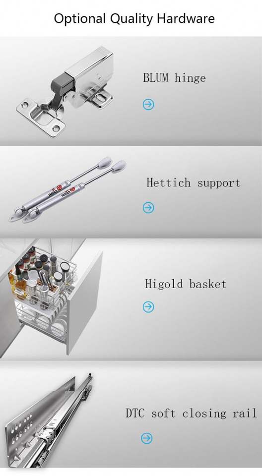 Dosseret, Tiroir panier, Coulisse, Robinet, Poignée et bouton, Charnière, Stockage à plateau tournant, Boîtes de riz, Cabinet de base d'évier, Coup de pied, Conteneur de déchets