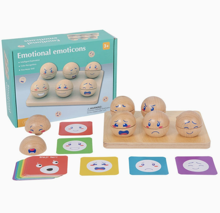 Jeu d'association émotionnelle en bois gratuit pour les tout-petits - Jouet éducatif interactif parent-enfant avec balles d'expression