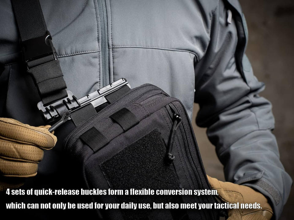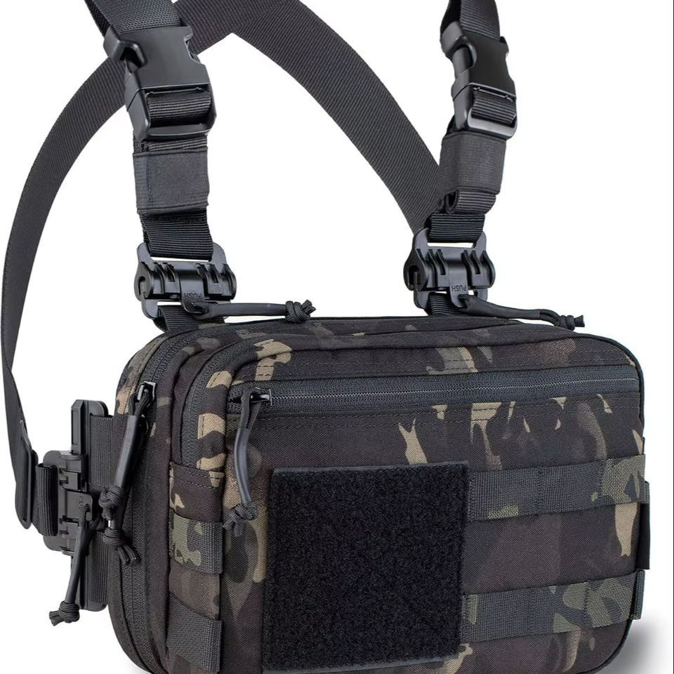 Échantillon gratuit 2024 Sac de poitrine tactique fonctionnel, Sac banane tendance style Hip Hop, Sac à dos de poitrine noir Wild