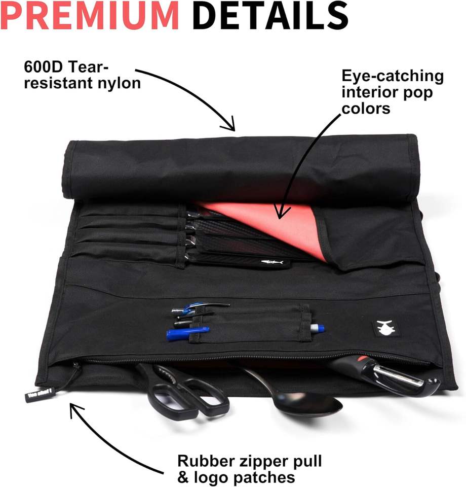 Échantillon gratuit de kit de couteaux de cuisine pliable et portable de grande capacité, résistant aux rayures, pour chef