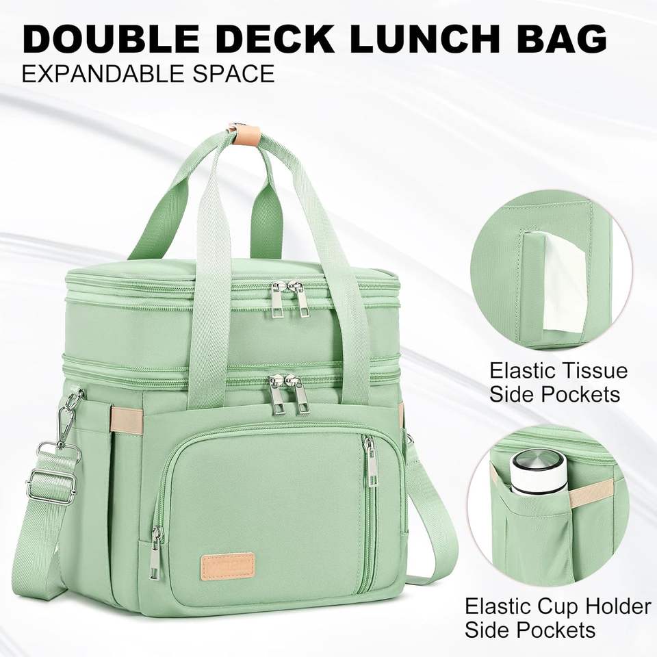 Sac isotherme gratuit à double compartiment, sacs à déjeuner isolés pour hommes, travail, imperméable, anti-fuite, sac à déjeuner avec bandoulière