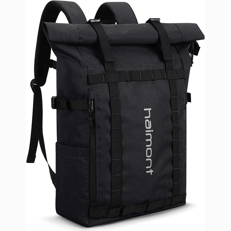 Free sample Cost of manufacturing Outdoor Laptop Top Roll Backpack in Customized, Premium Recycled Polyester Canvas
