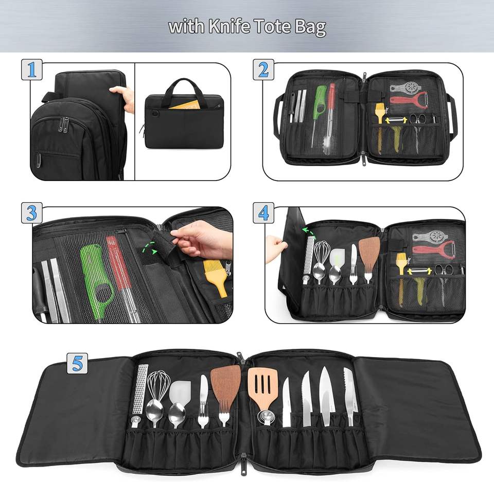 Échantillon gratuit personnalisé durable grand couteau à poches multiples étui de transport couteau de chef sac à dos couteau sac