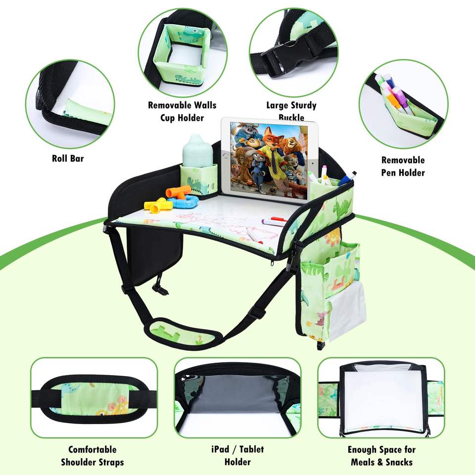 Échantillon gratuit personnalisé nouveau multifonctionnel enfant en bas âge siège arrière de voiture plateau de voyage organisateur enfants plateau de voyage plateaux pour tout-petit noir