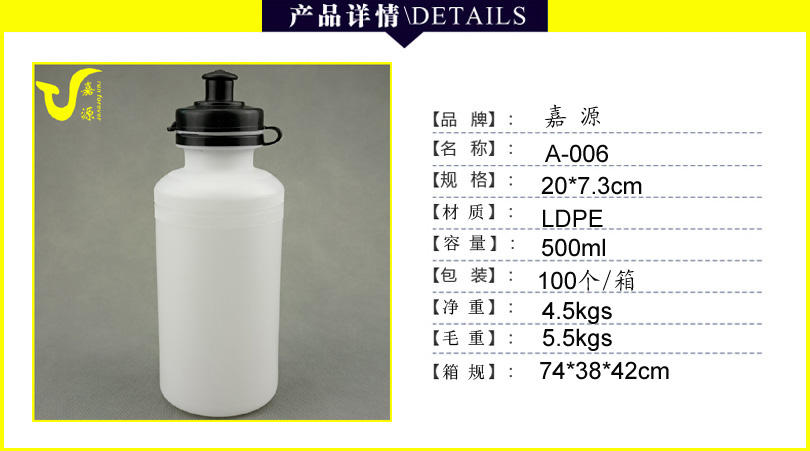 Échantillon gratuit Bouteilles d'eau en plastique personnalisées sans BPA pour le cyclisme et le sport avec caractéristiques écologiques pour la salle de sport ou le vélo