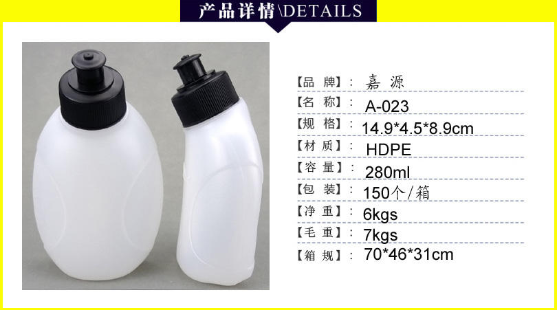 Échantillon gratuit : Gourde de sport en plastique à compression pour cyclisme, activités de plein air et salle de sport