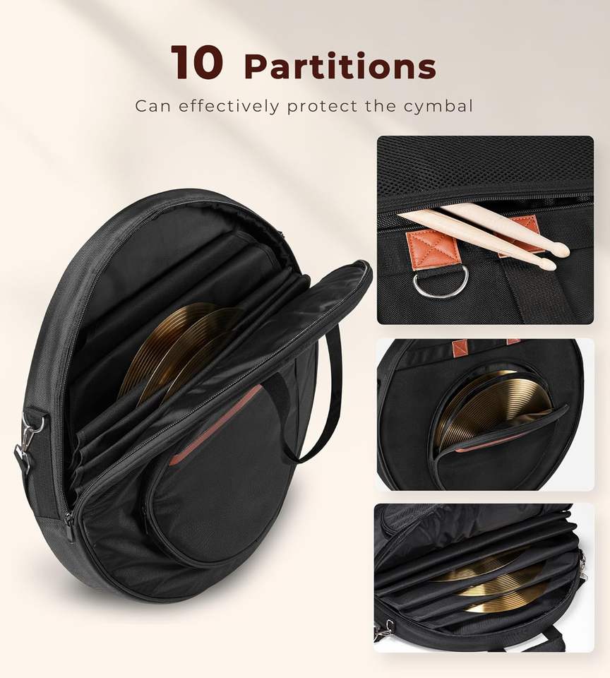 Échantillon gratuit : Sac pour cymbales, étui double couche avec séparateur rembourré de 6 mm, poignées et sangles de sac à dos