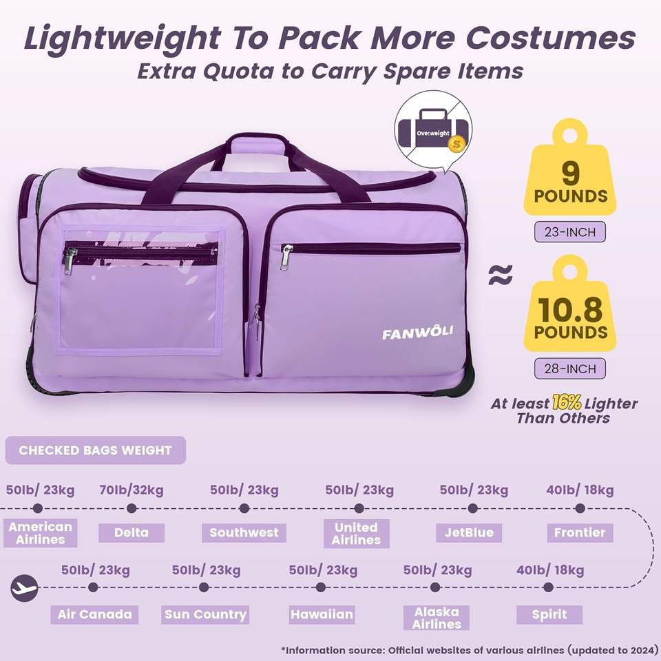 Échantillon gratuit Sac de danse à roulettes avec support, Sac de danse à roulettes pliable à roulettes le plus vendu/Sacs à bagages