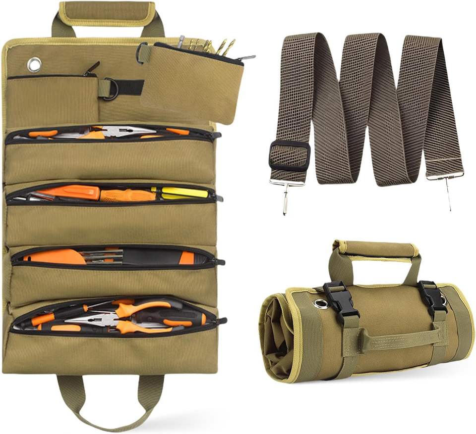 Échantillon gratuit Organiseur d'outils enroulable détachable en Oxford Sac à outils roulant pour mécanicien et électricien