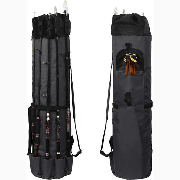 Échantillon gratuit Sac de rangement pour canne à pêche et moulinet en toile durable Sac de transport de voyage - Contient 5 cannes et accessoires