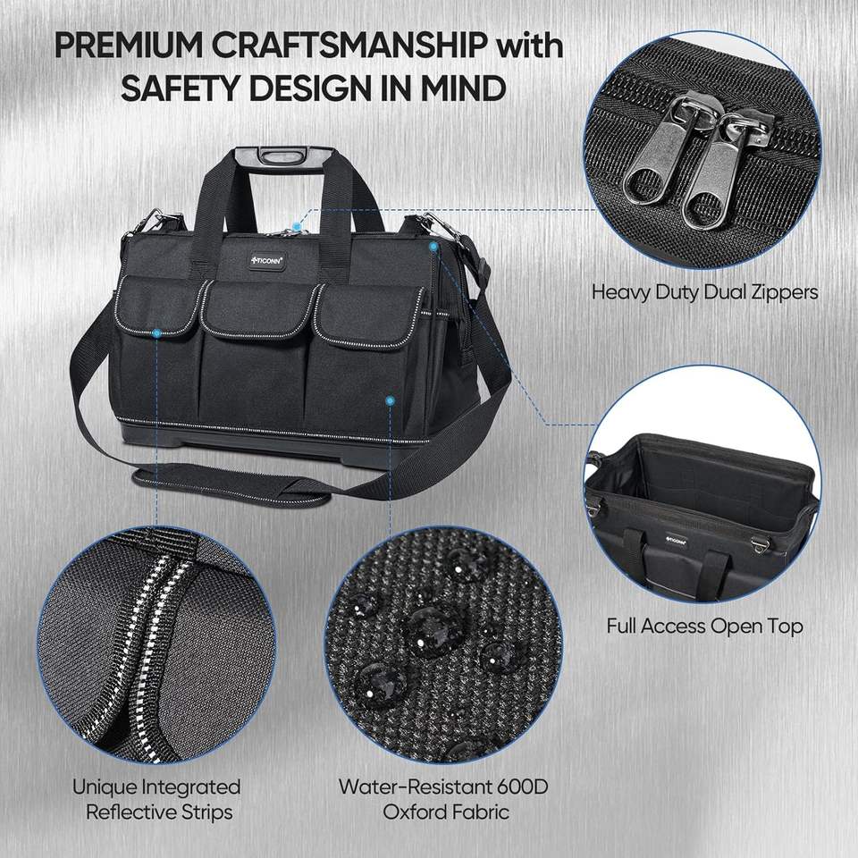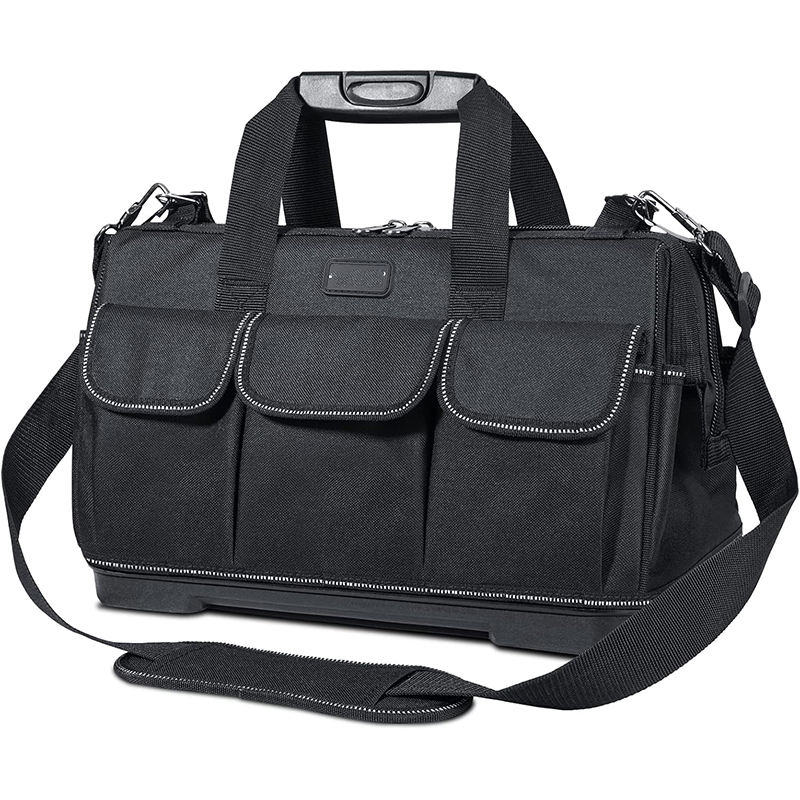 Échantillon gratuit : Sac de rangement pour outils robuste pour électricien, 21 poches, ouverture supérieure manuelle