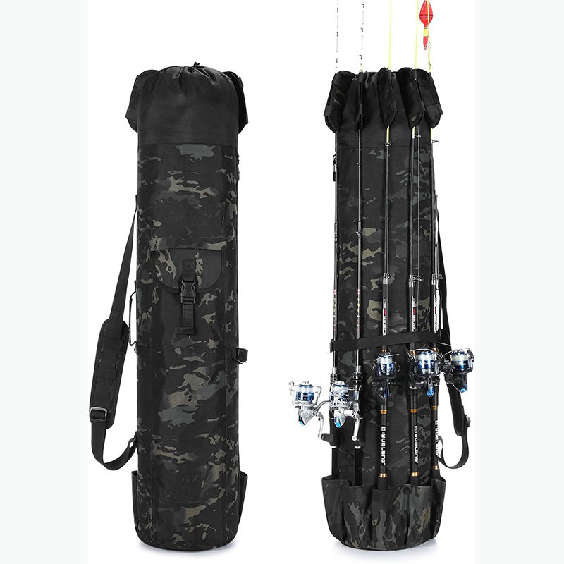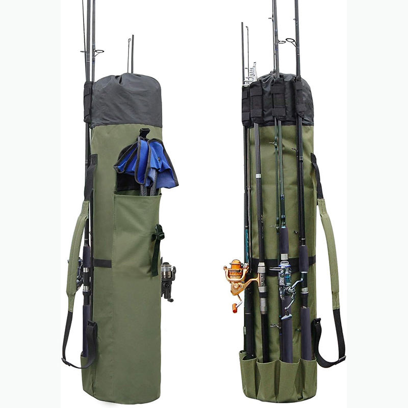 Échantillon gratuit Sac à canne à pêche, 81L Grand rangement Étanche Sac à canne à pêche résistant à l'eau Peut contenir 6 cannes et moulinets, Sac à pêche pliable