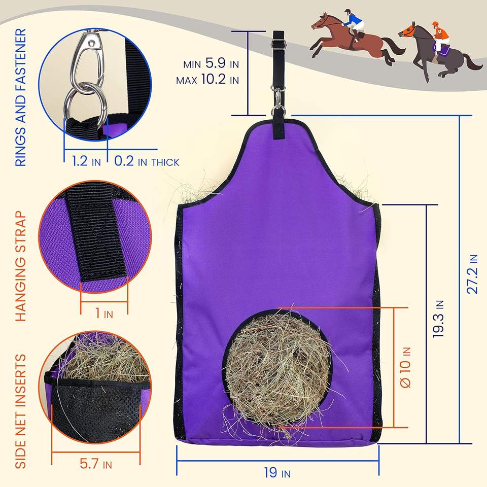 Échantillon gratuit de sacs à foin pour chevaux/chèvres, sac à foin à alimentation lente avec tissu Oxford super résistant et fermeture éclair robuste