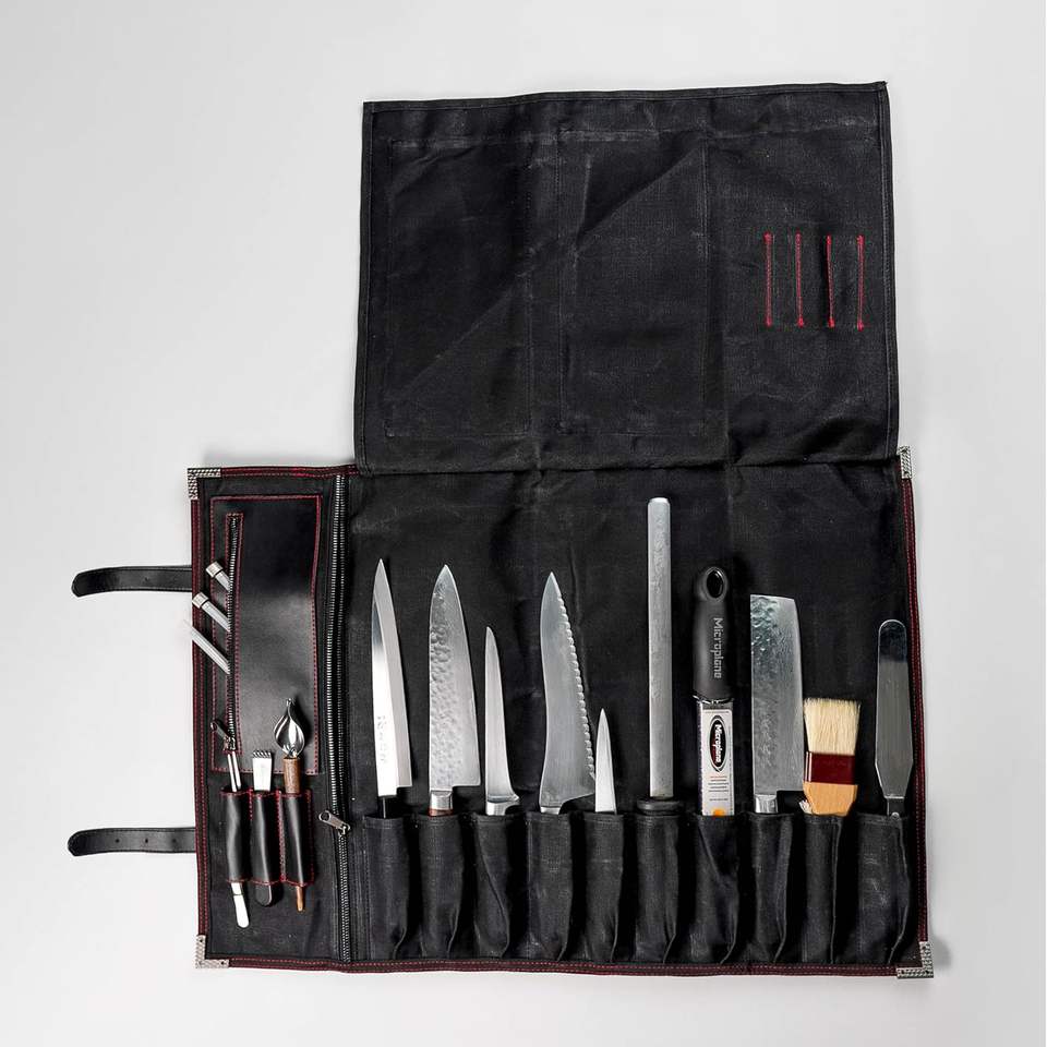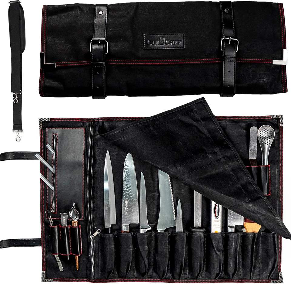 Échantillon gratuit Sac de rangement culinaire pour cuisine en toile cirée Sac de transport pour couteaux Sac de chasse portable Sac à roulettes pour chef