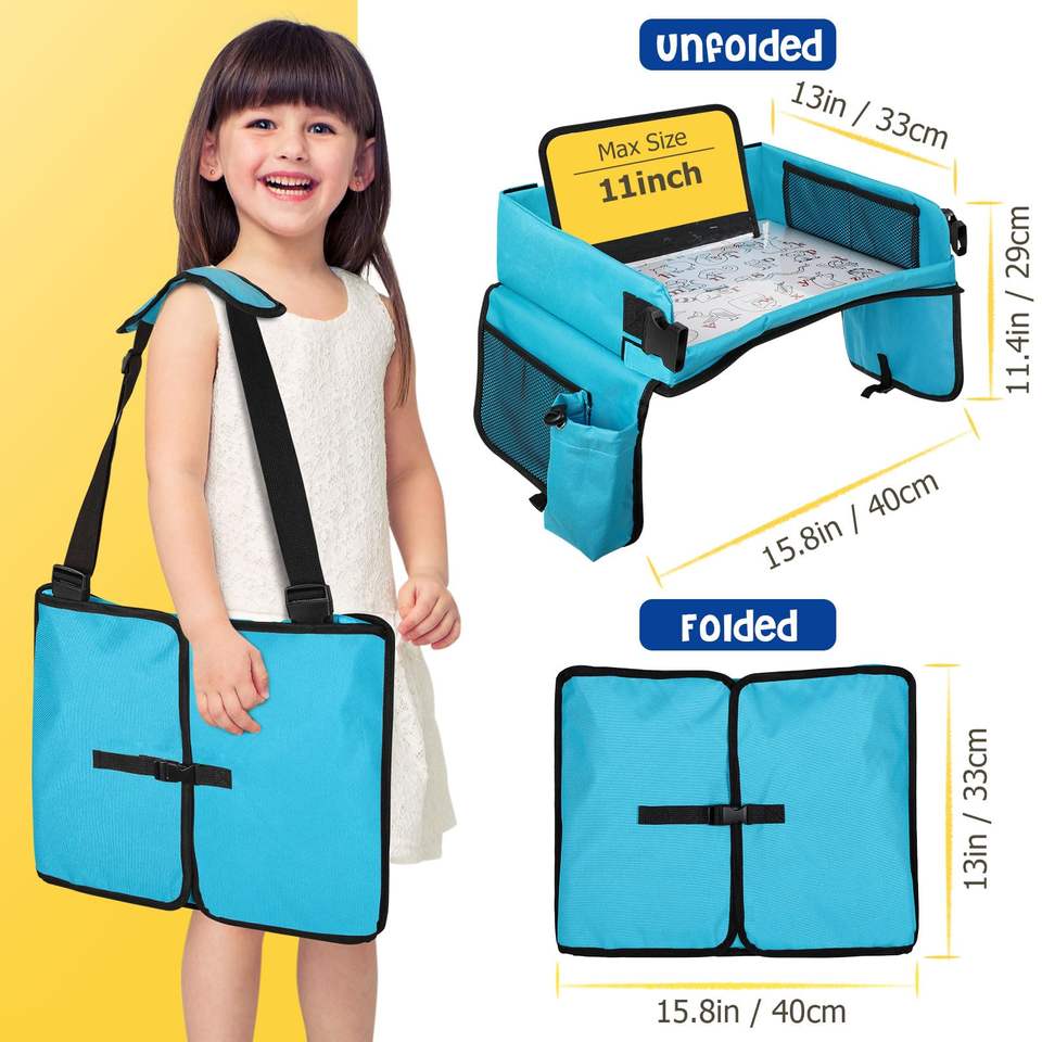 Plateau de voyage pour enfants avec tableau effaçable à sec, plateau d'activités, organisateur de siège de voiture éducatif confortable pour enfants et tout-petits