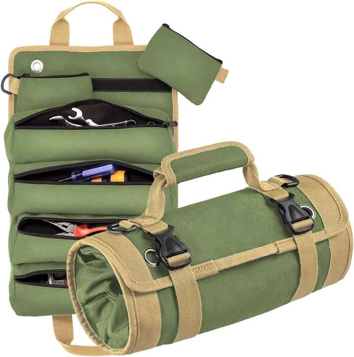 Échantillon gratuit Nouveauté Sac à outils grande capacité avec compartiments séparés, organisateur de sacs à outils à fermeture éclair, petit sac à bandoulière pour voiture, à suspendre