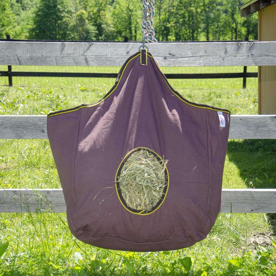 Échantillon gratuit grand sac en toile portable personnalisé original pour foin de cheval sac en filet de balles de foin en polyester léger sac en maille pour alimentation de cheval