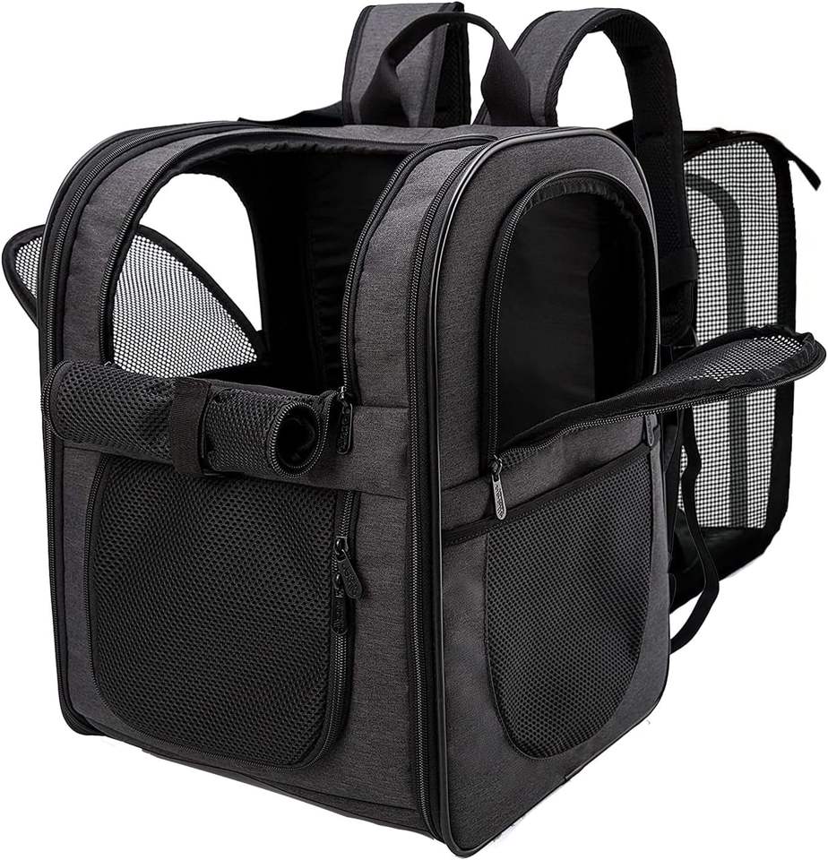 Échantillon gratuit de cage de transport pour animaux de compagnie en cabine, cage de transport pour chat approuvée par les compagnies aériennes avec tapis en flanelle, cages de transport pour chiens de petite taille avec bretelles