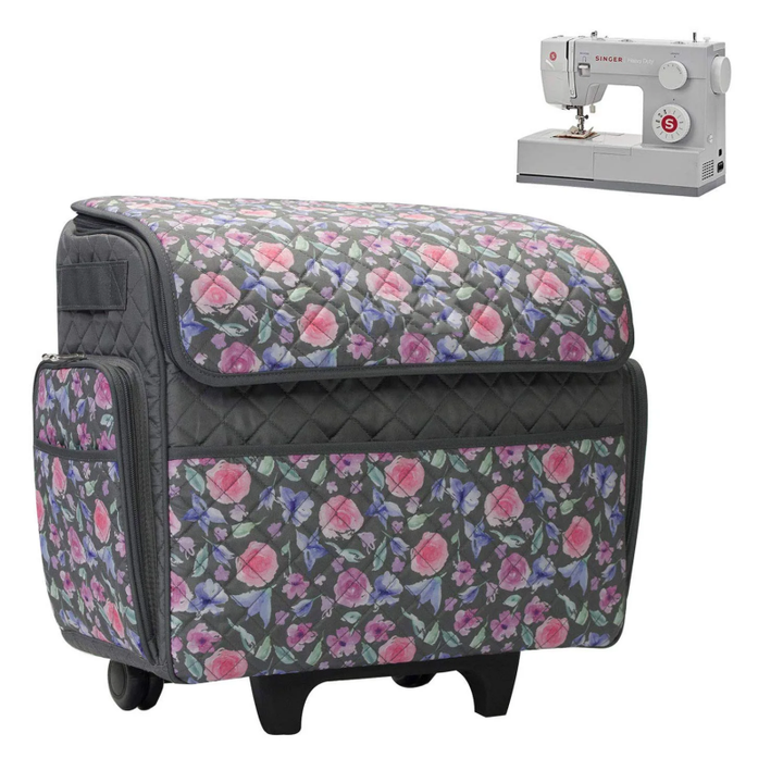 Échantillon gratuit : Sac de transport à roulettes avec bandoulière et poignées robustes, compatible avec les étuis de machine à coudre sur roulettes