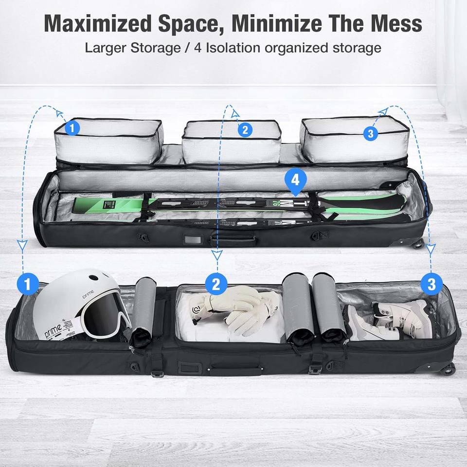 Échantillon gratuit Sac de voyage pour snowboard et chaussures de snowboard Sac à roulettes multifonctionnel pour ski Sac de snowboard noir Roues Poignées Sangles