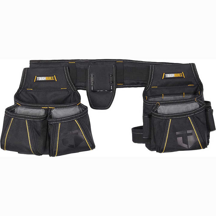 Échantillon gratuit : Ceinture à outils avec bretelles, support magnétique pour téléphone et pochette pour perceuse à main, équipement pour charpentiers et électriciens