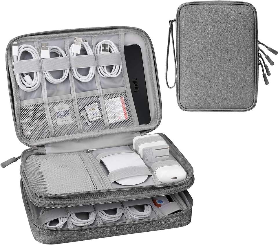 Échantillon gratuit sac organisateur de câble de voyage, étui d'accessoires électroniques sac de rangement de câble portable à double couche pour cordon