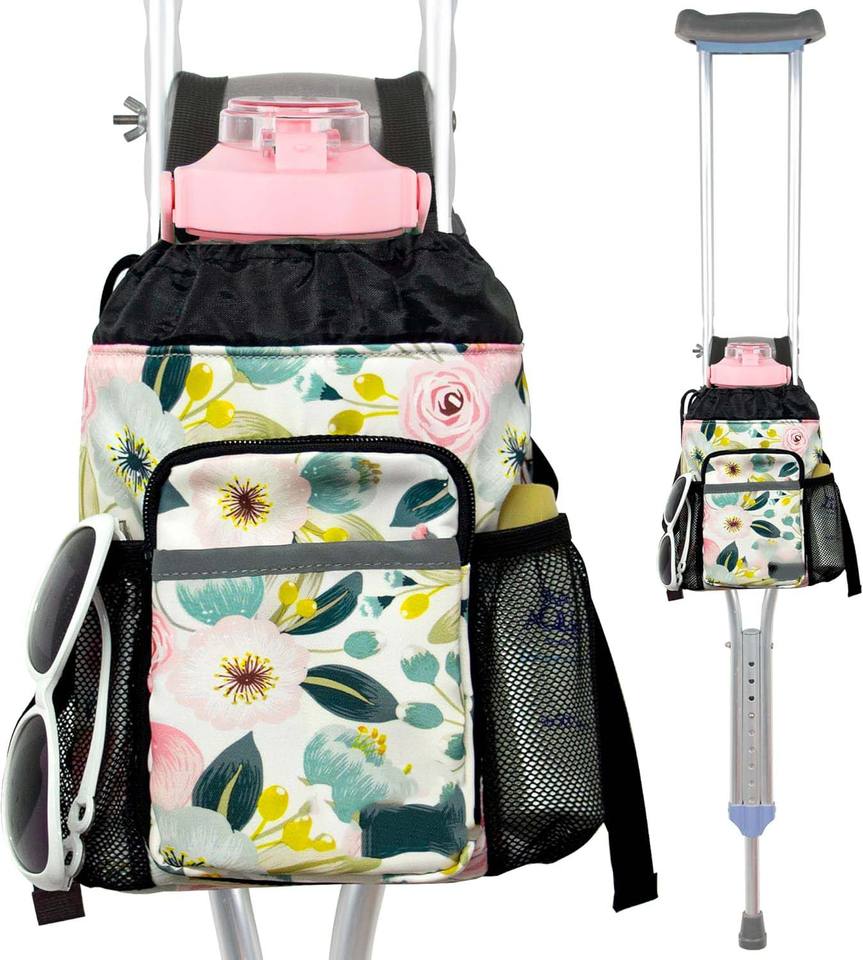 Échantillon gratuit Sac de transport universel pour déambulateur et rollator, pochette pour béquilles avec poche zippée réfléchissante, sac universel pour béquilles