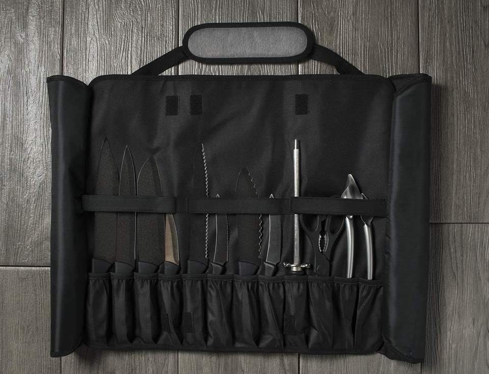 Couteau de voyage étanche échantillon gratuit rouleau sac robuste fermeture éclair couteau outil toile matériel pliable couteau mallette de rangement