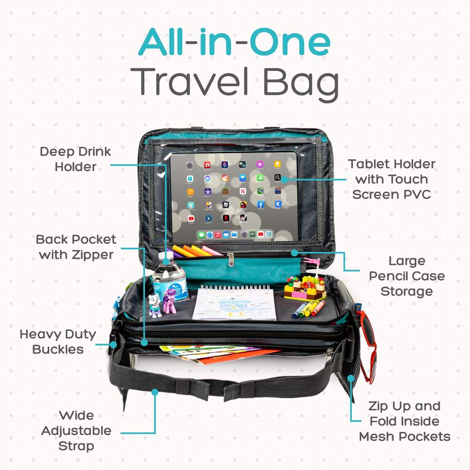 Échantillon gratuit Vente en gros Plateau d'activités pliable pour siège auto enfant avec support tablette pour tout-petits, jeu, étude et peinture