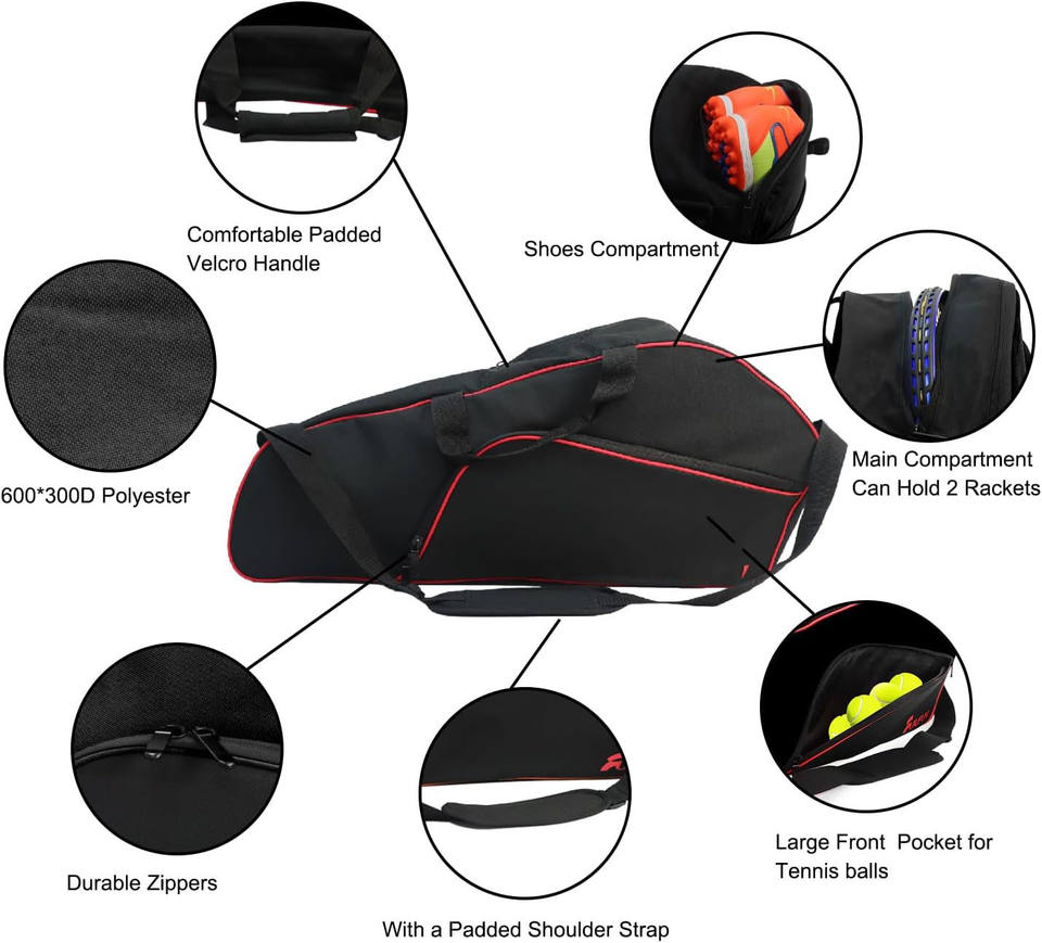 Échantillon gratuit, sac de raquette de tennis personnalisé en gros, sac à dos de raquette de tennis avec compartiment pour chaussures